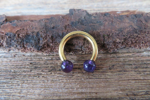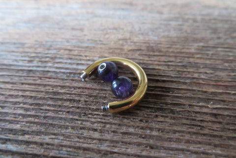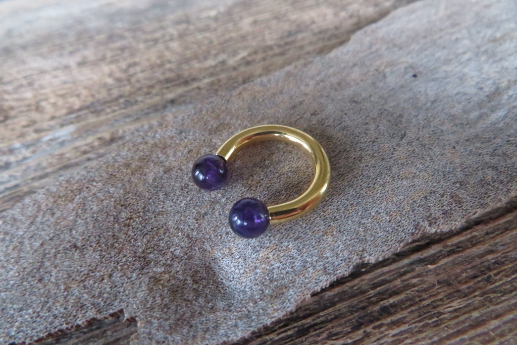 Materials: Gold ion plated 100% 316L surgical steel externally threaded horseshoe curve and 5mm natural stone balls.
