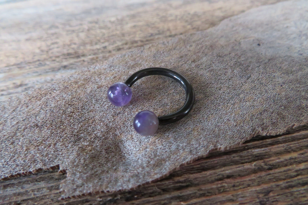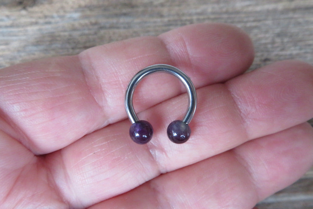 Always be gentle with your barbell when you are twisting on the stone balls, so that you do not accidentally strip the threading by over-tightening them. If you continue twisting the stone balls past the point where they reach a soft, natural stopping place at the end of their threading, you will most likely dislodge them and damage your jewelry.