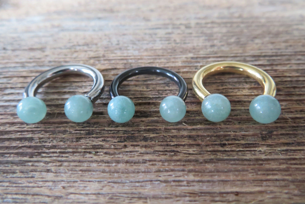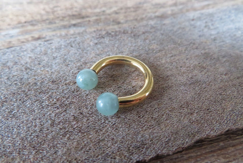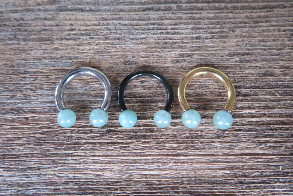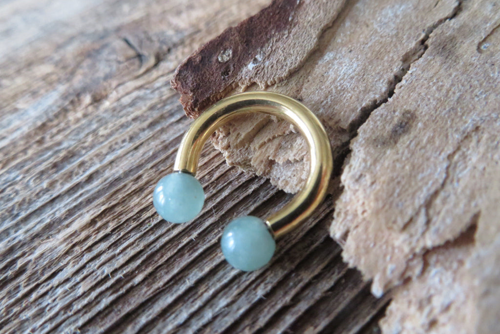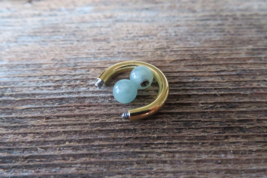 Materials: Gold ion plated 100% 316L surgical steel externally threaded horseshoe curve and 5mm natural stone balls.