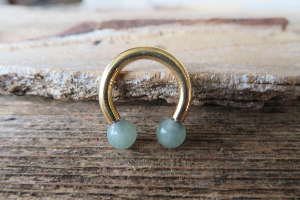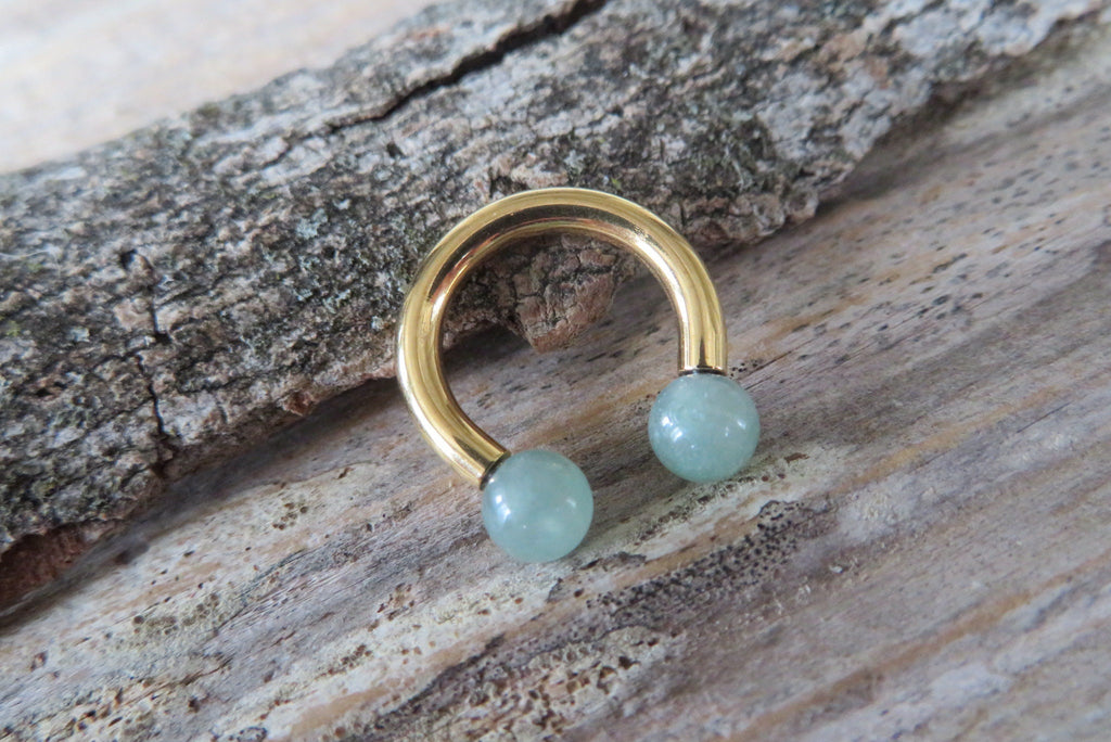 Gold IP Natural Stone Surgical Steel Horseshoe Piercing