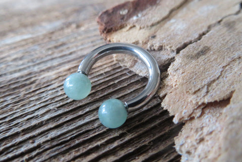 Always be gentle with your barbell when you are twisting on the stone balls, so that you do not accidentally strip the threading by over-tightening them. If you continue twisting the stone balls past the point where they reach a soft, natural stopping place at the end of their threading, you will most likely dislodge them and damage your jewelry.